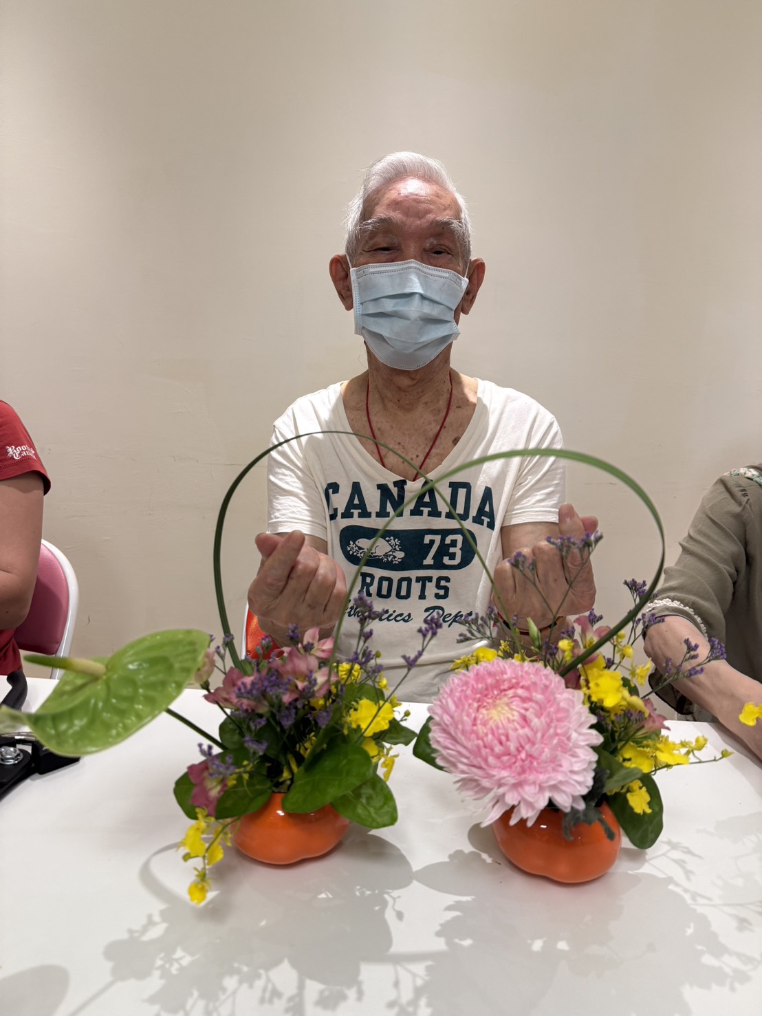 長輩們在課程中透過觀察、觸摸與創作,不僅享受花卉的美好,也在過程中活化大腦、鍛鍊手指,讓身心靈獲得放鬆與活力,