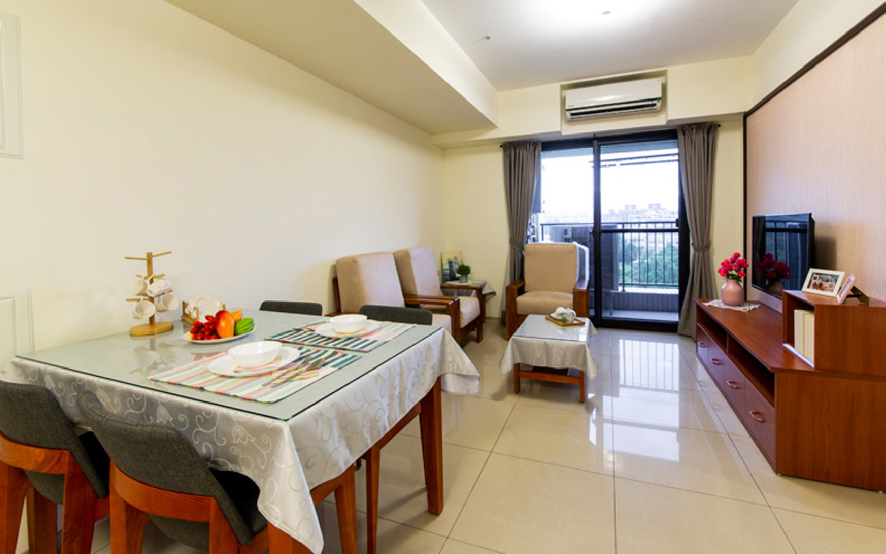 2廳(客廳/餐廳)、3房、1廚、2衛浴及陽台等,適合1-3⼈居住,有家庭之溫馨感,房間可做多功能⽤途,提供家電、適齡傢俱、家飾等⼀應俱全。