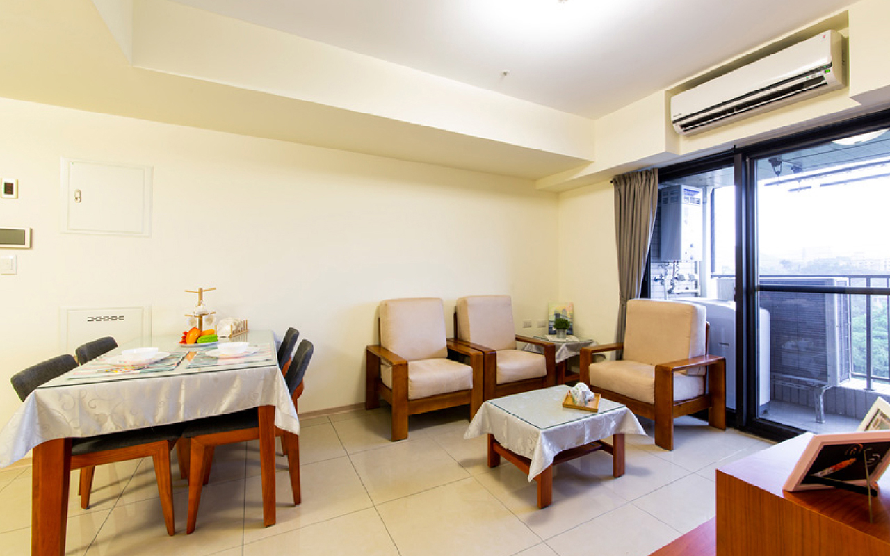 UWB定位系統、緊急求救系統、適齡傢俱(衣櫃、沙發、桌椅、鞋櫃)、床墊、床包、冷氣空調、廚俱、冰箱、電視、室內電話、燈具、窗簾。