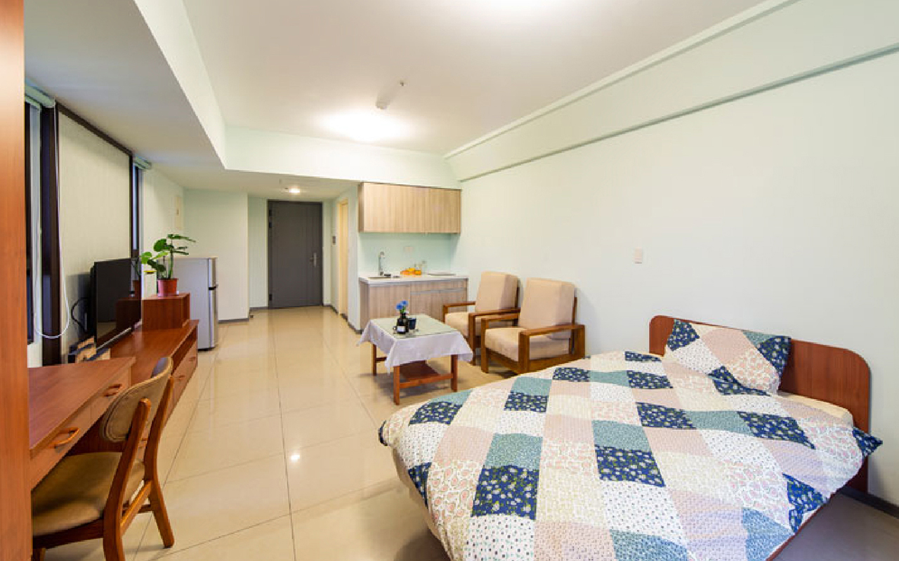 床墊、冷氣空調、廚俱、冰箱、電視、室內電話、燈具、窗簾、UWB定位系統、緊急求救系統、適齡傢俱(衣櫃、沙發、桌椅、鞋櫃)。